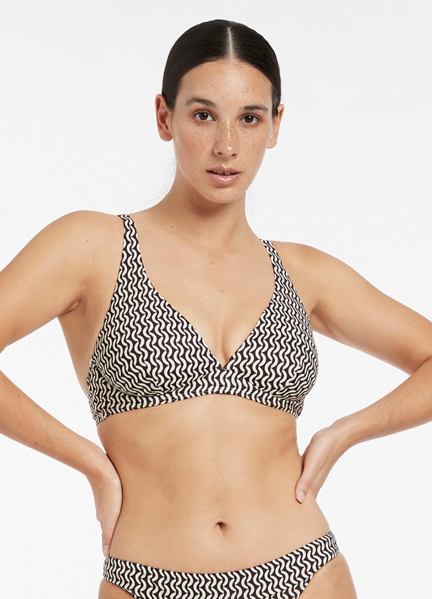 Our Ipanema collection features a contemporary geometric print inspired by mini coconut shells. Ipanema swim silhouettes are crafted from our trusted Italian fabrication and trimmed with luxurious tortoise inspired hardware for added elevation.