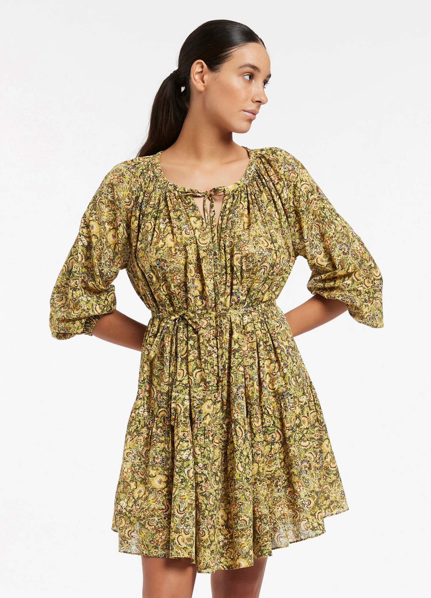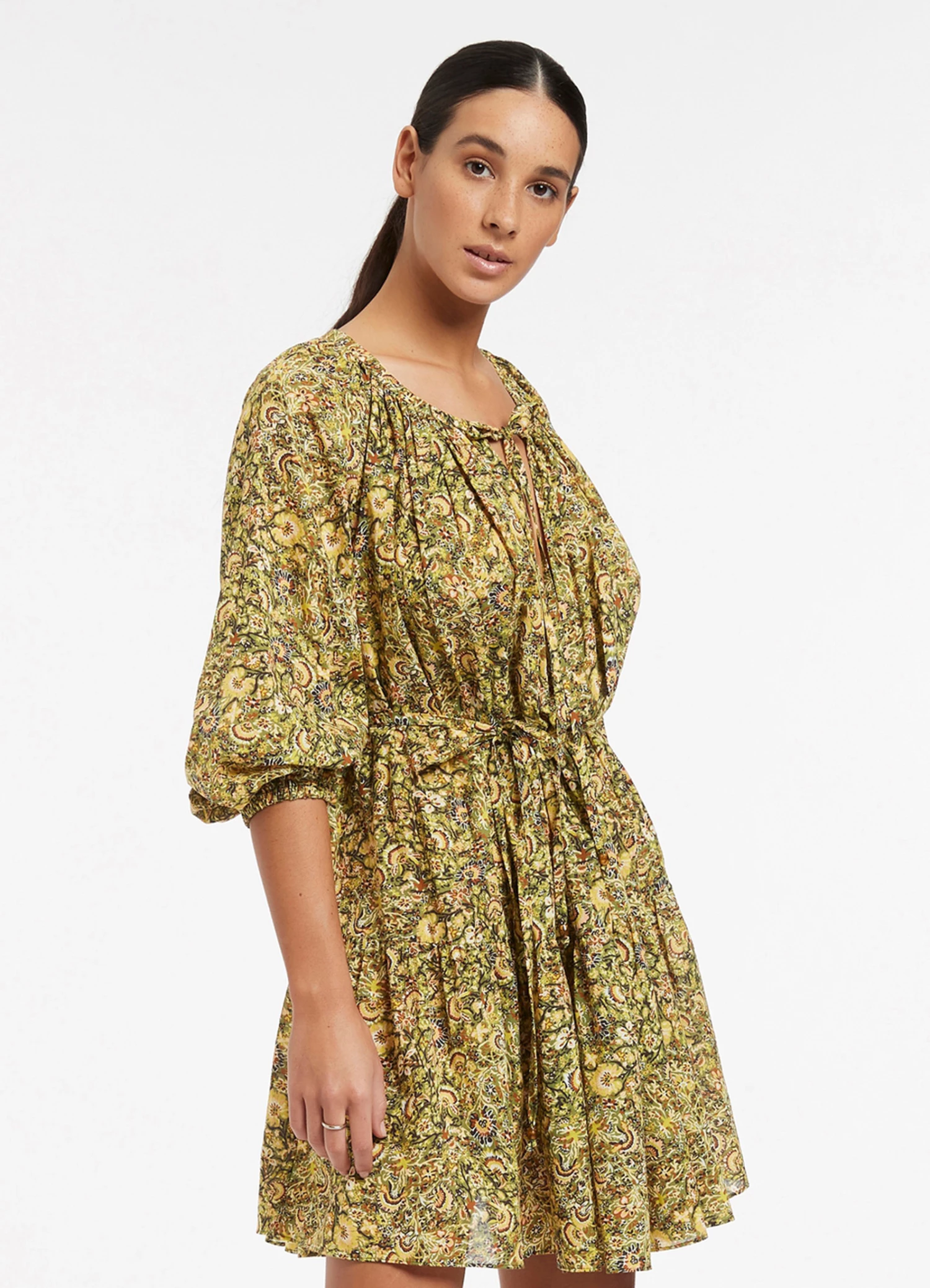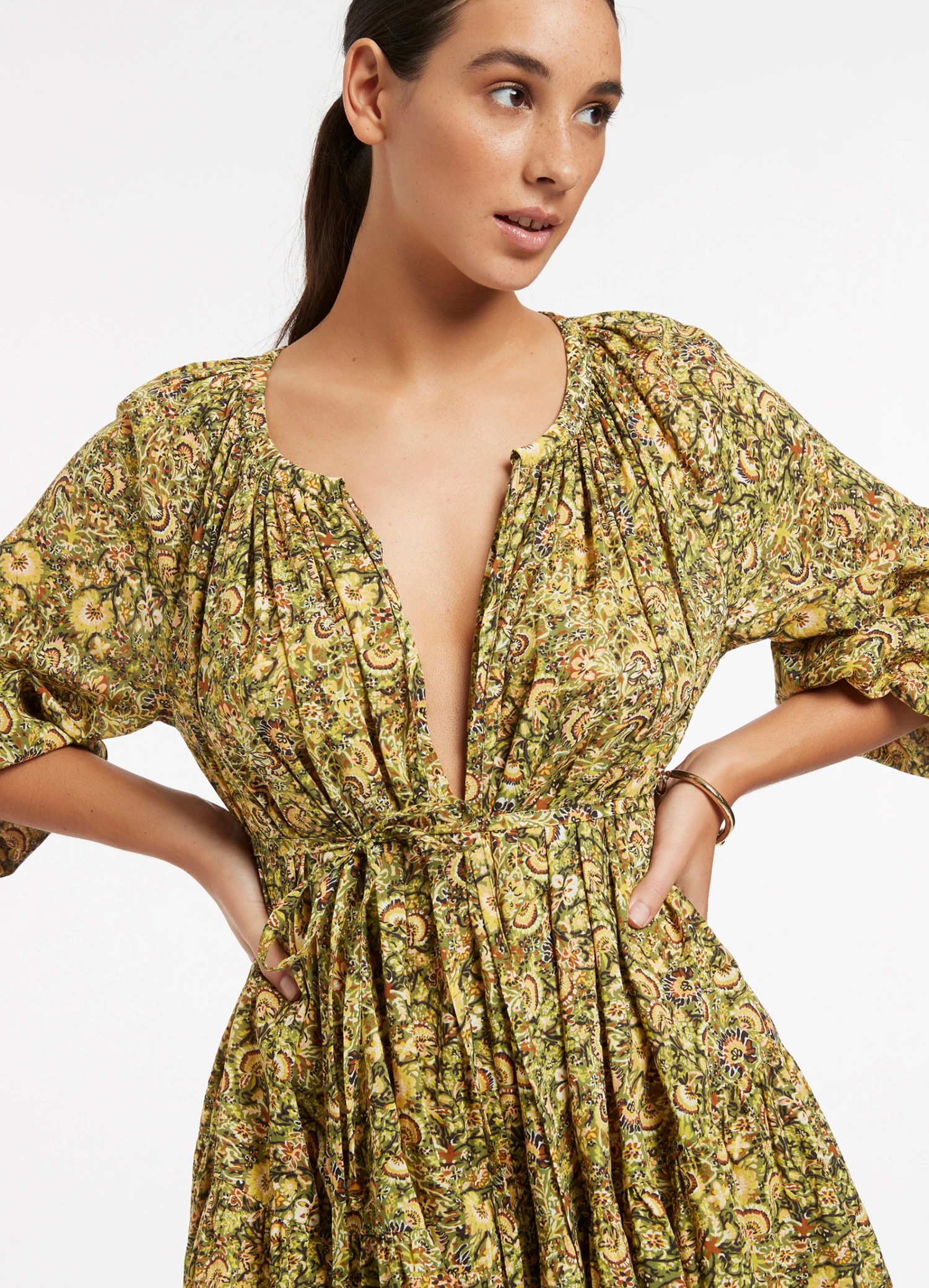 The Majorelle Bell Sleeve Kaftan comprises soft-to-touch pure cotton for an effortless luxury feel. Bead trim and tie detailing adorns the softly gathered neckline while the tie belt offers a waisted figure for a feminine silhouette.