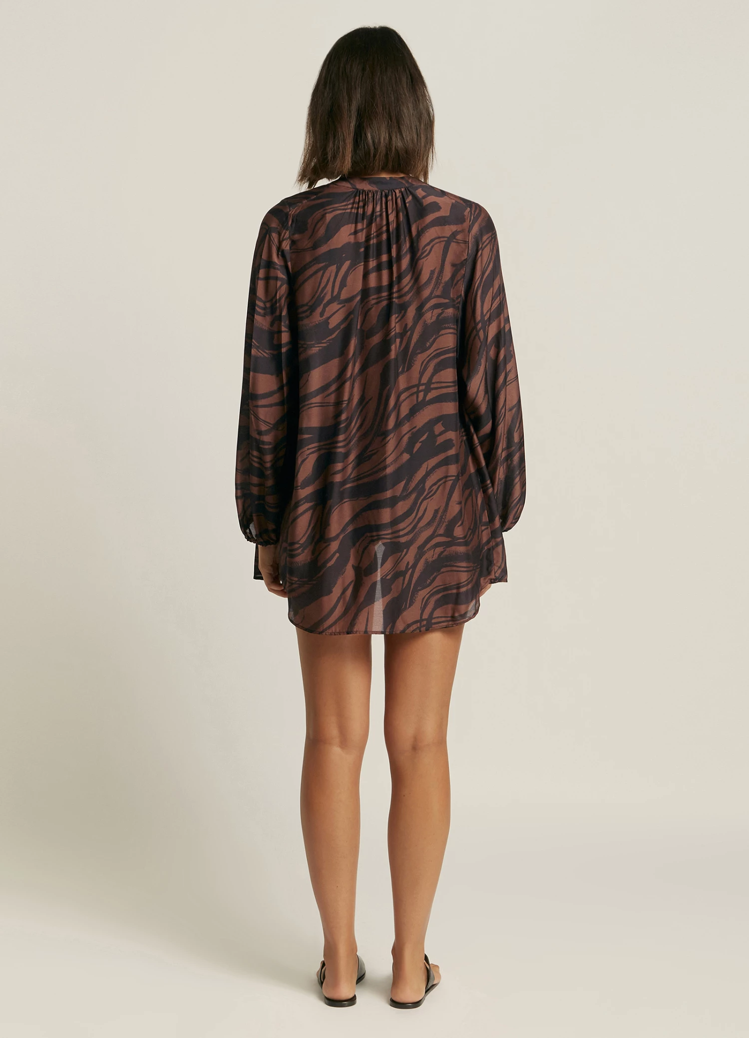 BURNT CLAY/BLACK COLOUR: Adrienne is 178cm tall, with a B cup and wears size 10.