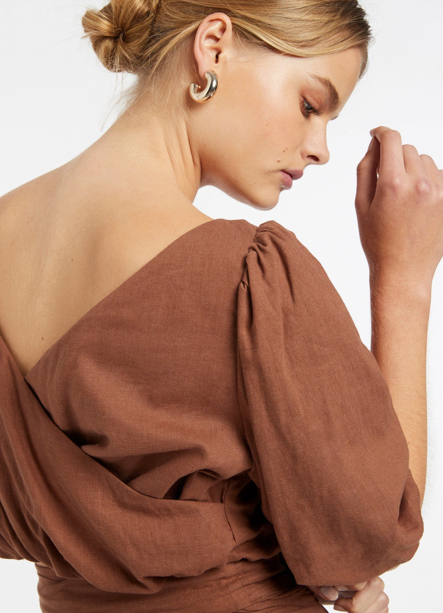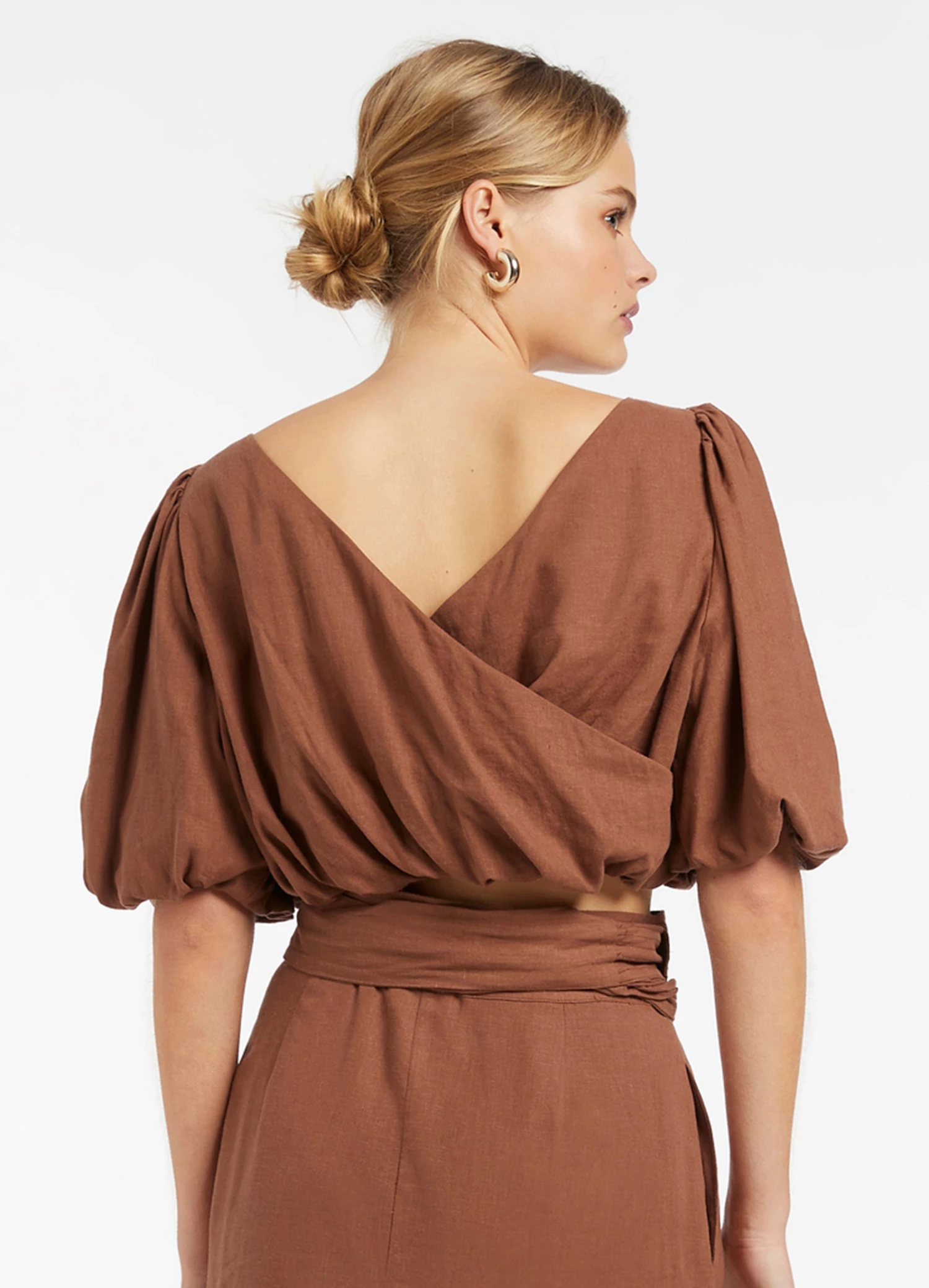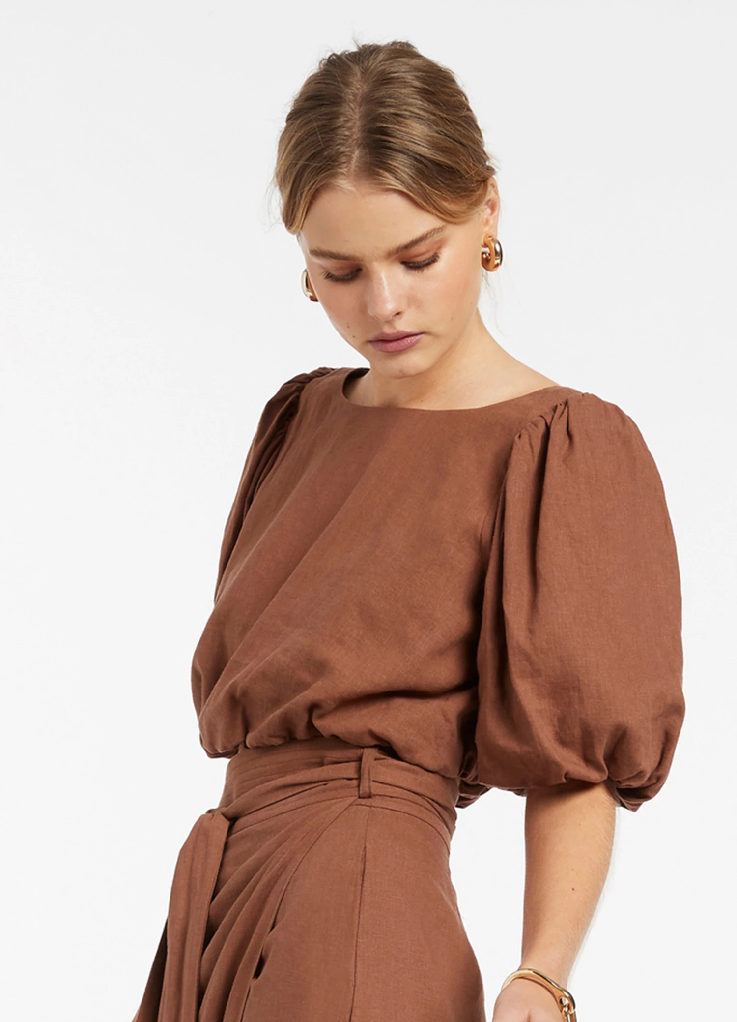 The Palmas Puff Sleeve Top is a classic cropped hem style crafted from a soft-to-touch linen viscose blend. The puff sleeves and simplistic design adorns the gathered waistband to complete the feminine silhouette.