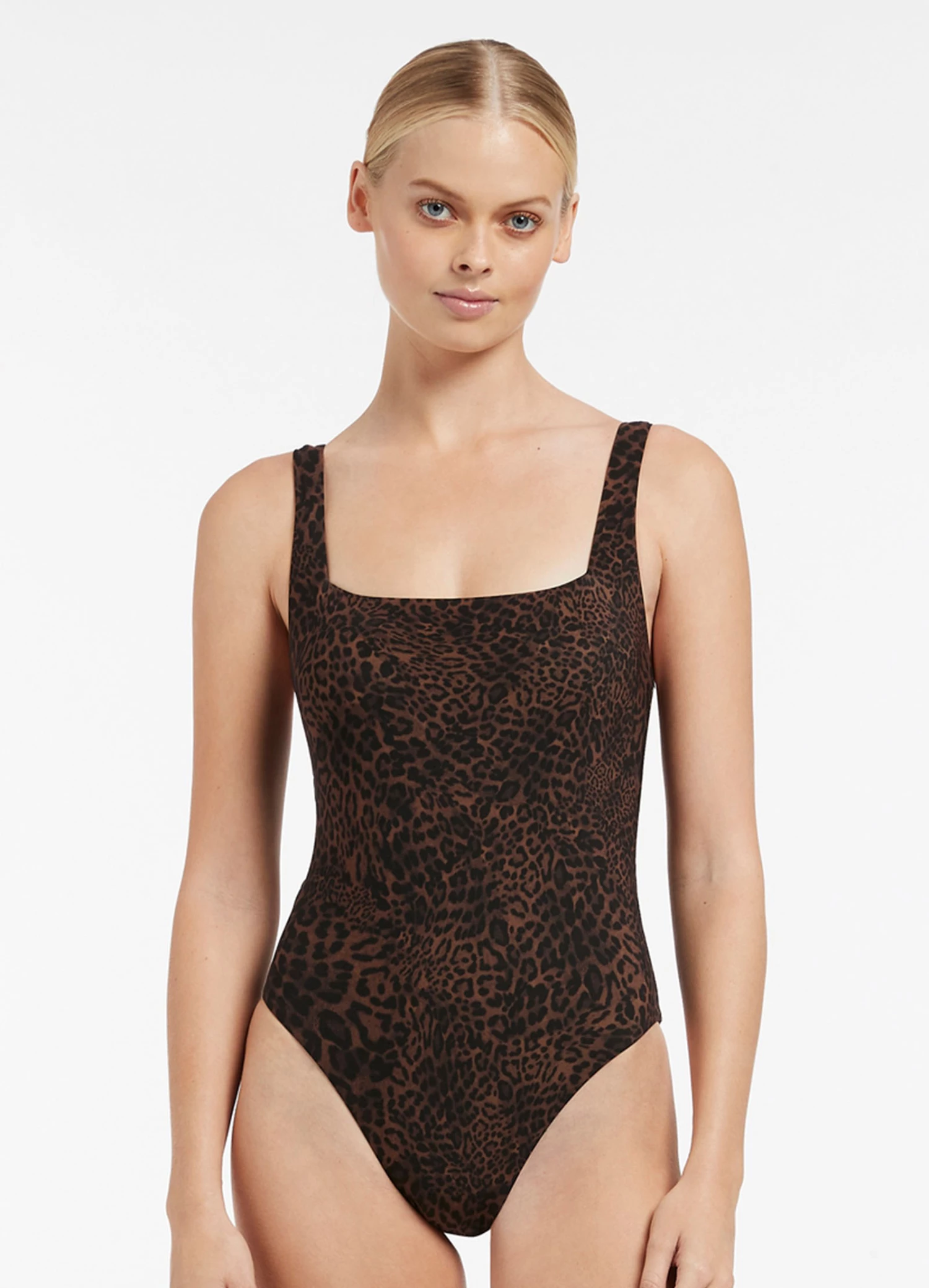 The Pantera Square Neck One Piece combines the classic square neck design with an elevated animal print detailing. Fitted with a comfortable shelf bra and removable cups, this one piece is the perfect silhouette for shape and support.