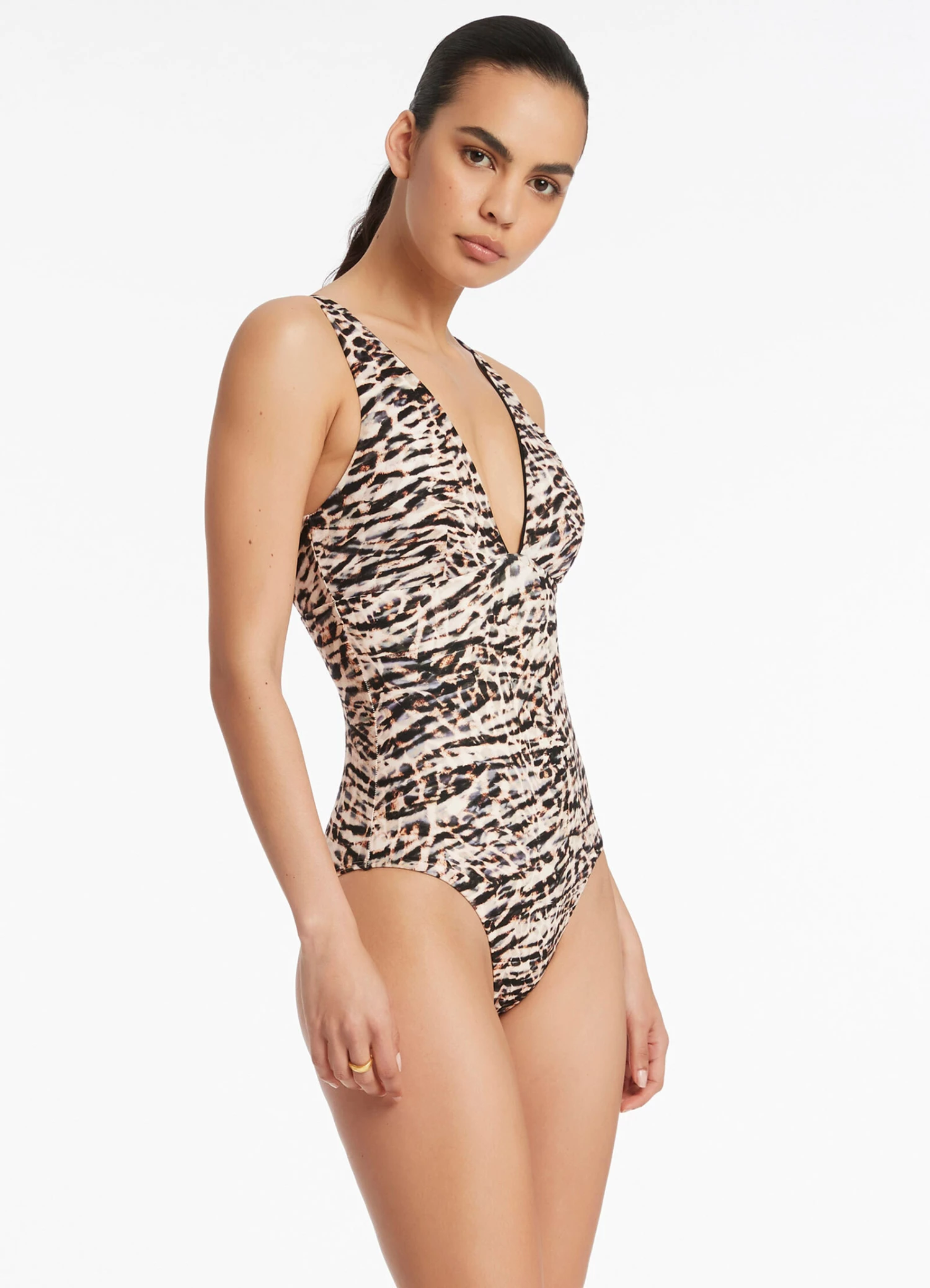 The Sahara Plunge One Piece Swimsuit Multi Fit combines form-fitting shape with a contemporary cut. Complete with internal shelf support, side boning and removable soft cups for comfortable support and shape definition, this elevated one piece provides a flattering addition to your swim wardrobe.