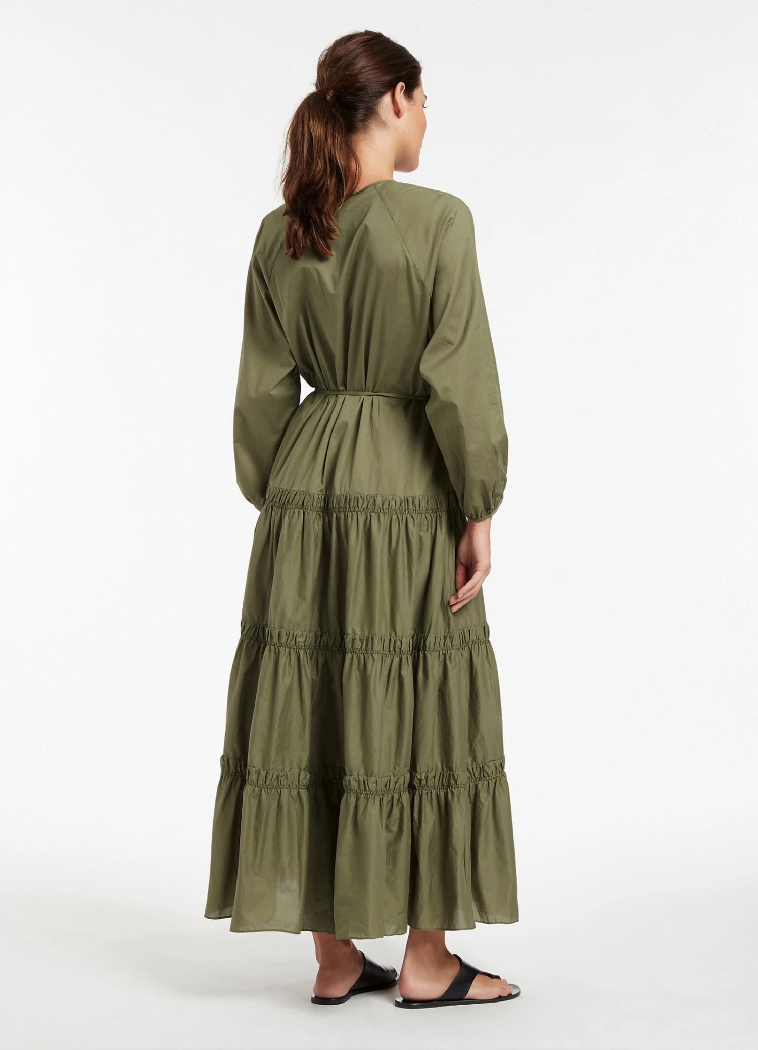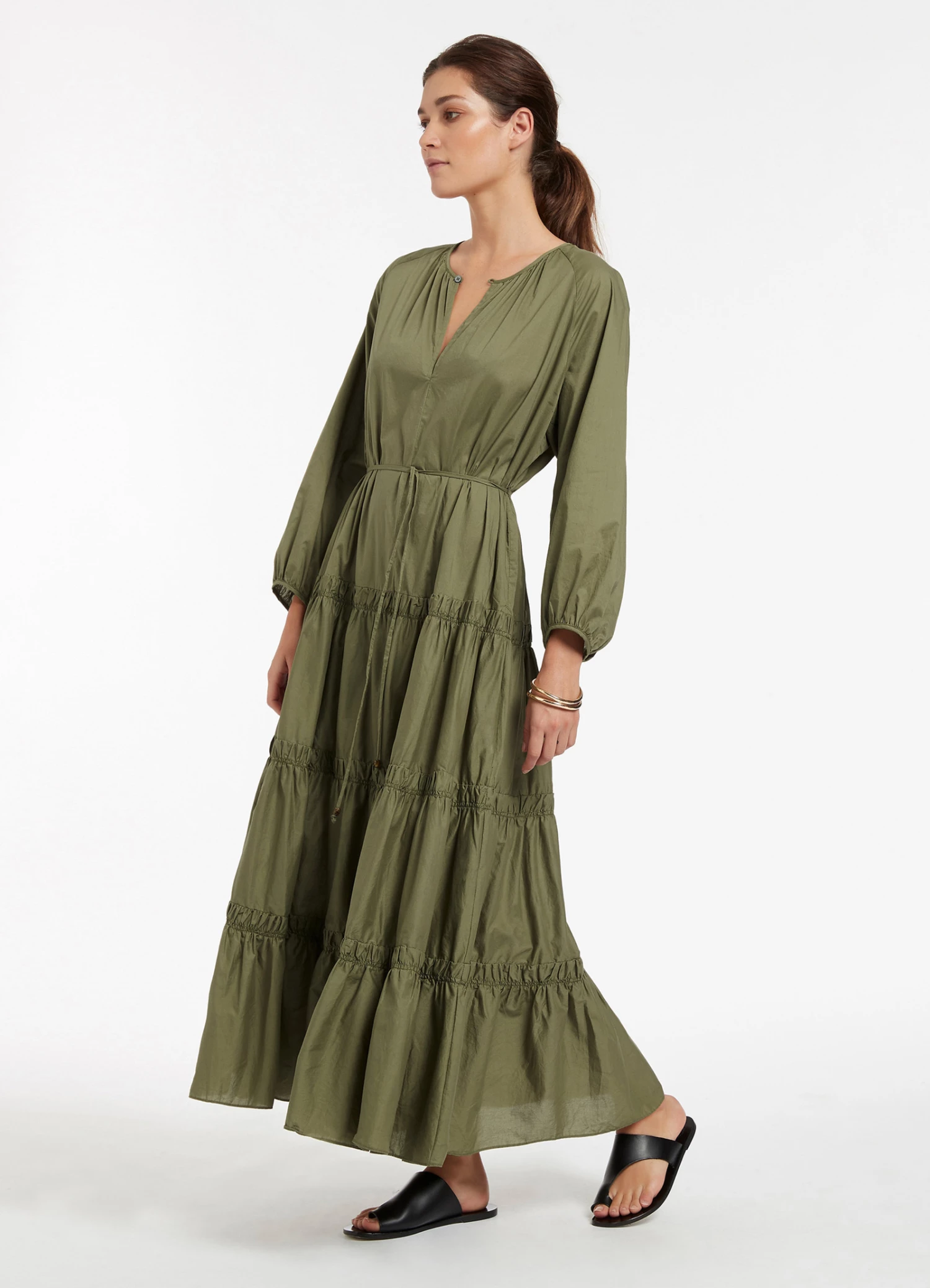 The JETSET Tiered Maxi Dress is crafted from crisp cotton-poplin with a soft to-touch composition. A tonal belt adorned with bead trim cinches the silhouette before graduating into a full hem skirt — the perfect warm weather maxi dress, designed for effortless luxe style.