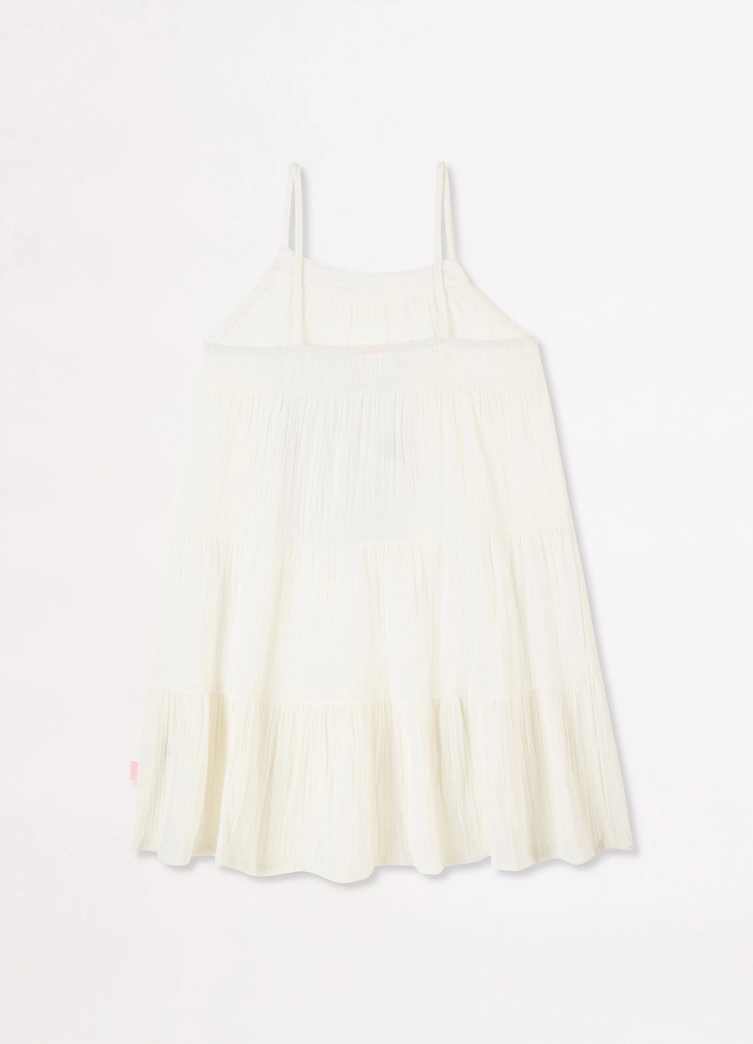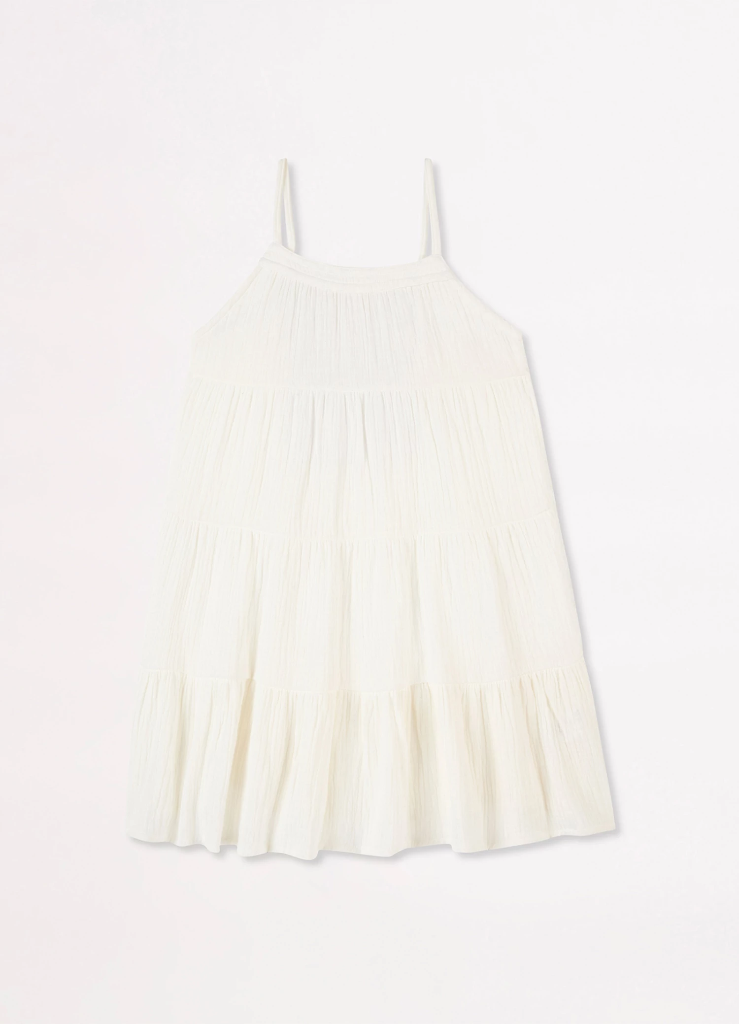 The Portofino Sleeveless Tiered Dress features tie straps with tassels, gathered ties and a stitched panel design to create the perfect day summer dress for girls.