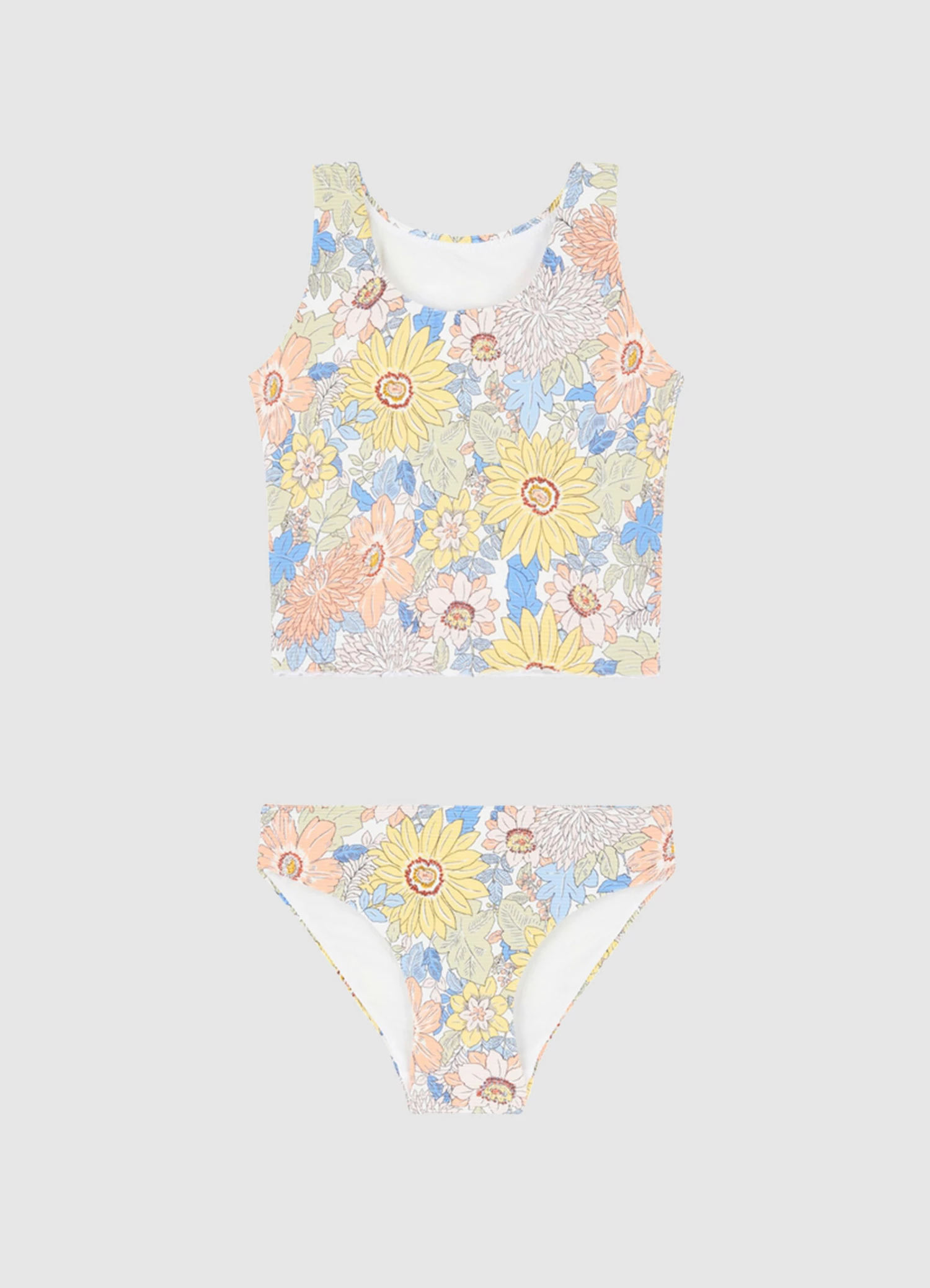 The Sunshine Days Tankini by Seafolly Kids is the perfect addition for a playful summers day. With a detailed hem edge, this tankini is the ultimate beach day swim outfit for your little one.