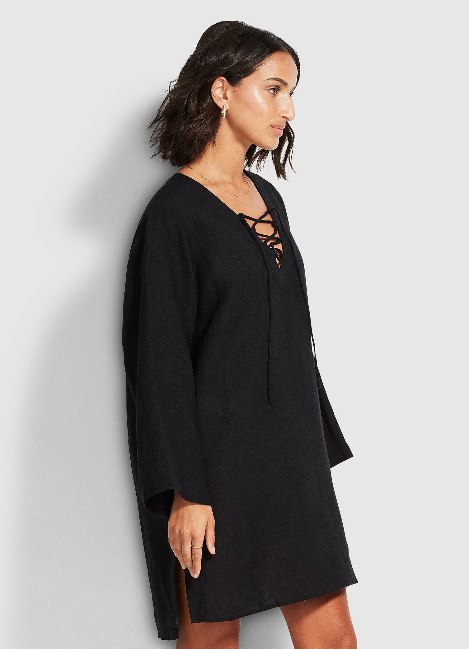 The Beach Edit Harbour Linen Cover Up by Seafolly is a comfortable yet stylish addition to your summer wardrobe. Our Beach Edit range has playsuits, shirts and slip dresses – all perfect for a day at the beach.