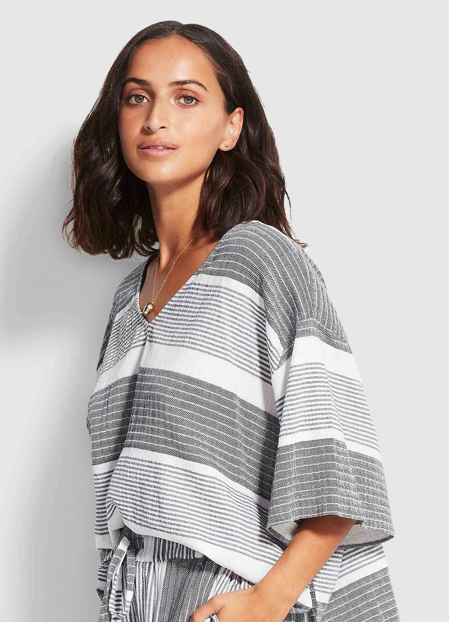 The Seafolly Jacquard Top is perfect for beach wear or an everyday casual look. This pure cotton top features a V neckline and is comfortably loose-fitting, offering an easy to wear style.