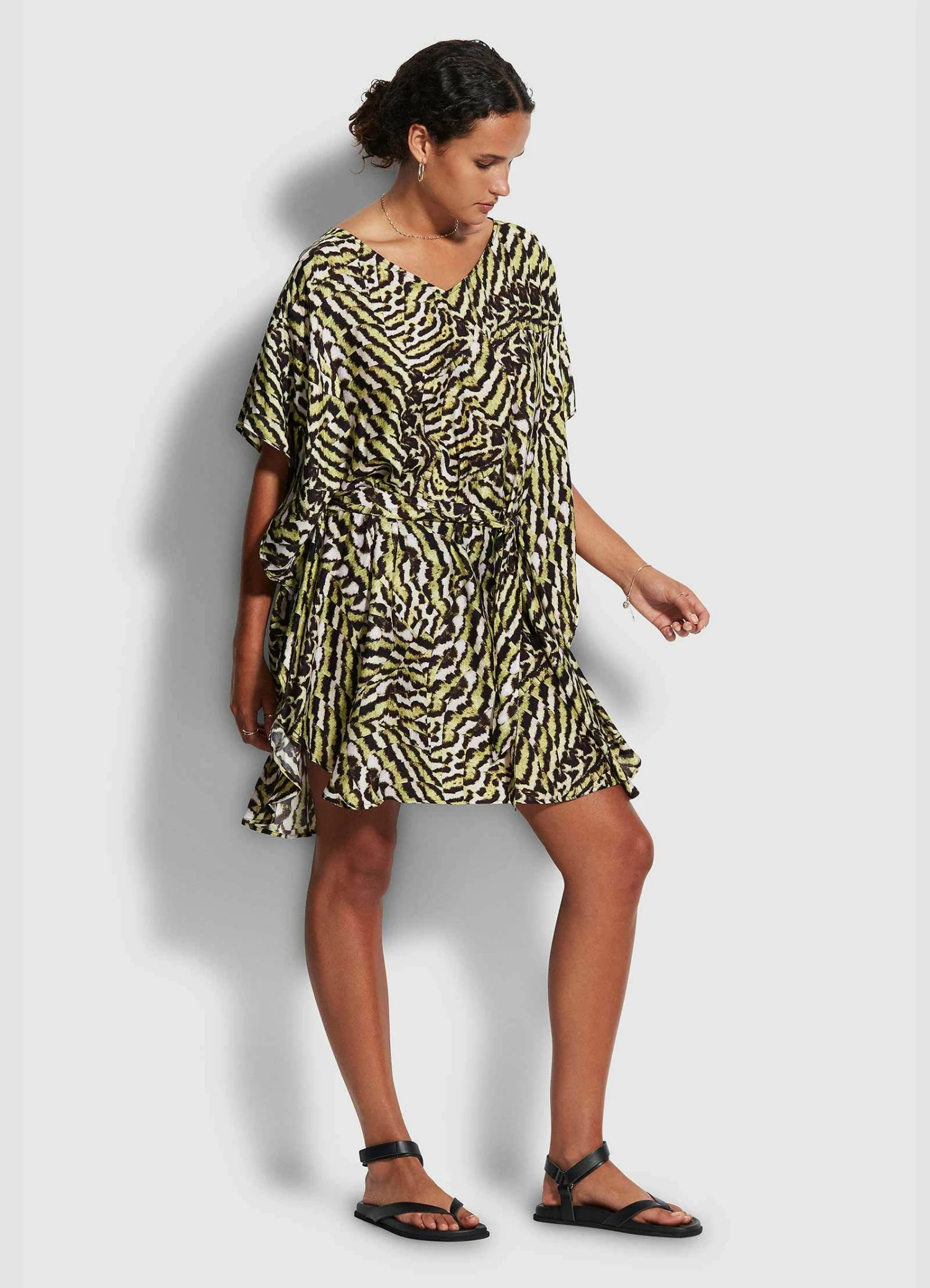The Seafolly Mandalay Kaftan is crafted from lightweight viscose-silk blend for effortless beach style. This kaftan is complete with wide flouncy sleeves and can be worn relaxed or with the matching belt for added shape.