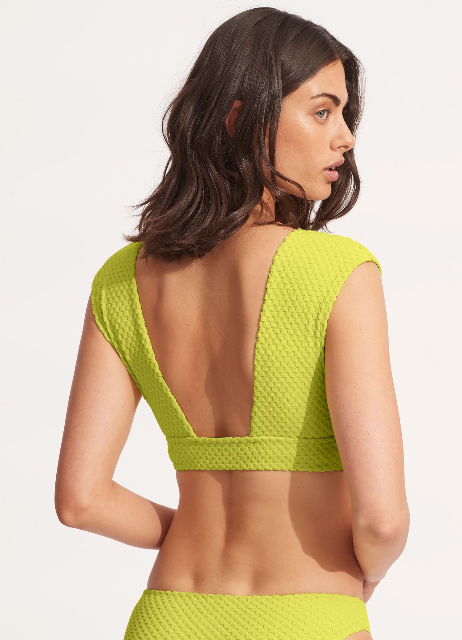 The Riviera Cap Sleeve Bikini Top is a retro design top featuring vintage terry towelling fabrication. Complete with a deep plunge neckline and removable cups, this bikini top is perfect for shape, support and pairing with a maxi skirt for a versatile beach look.