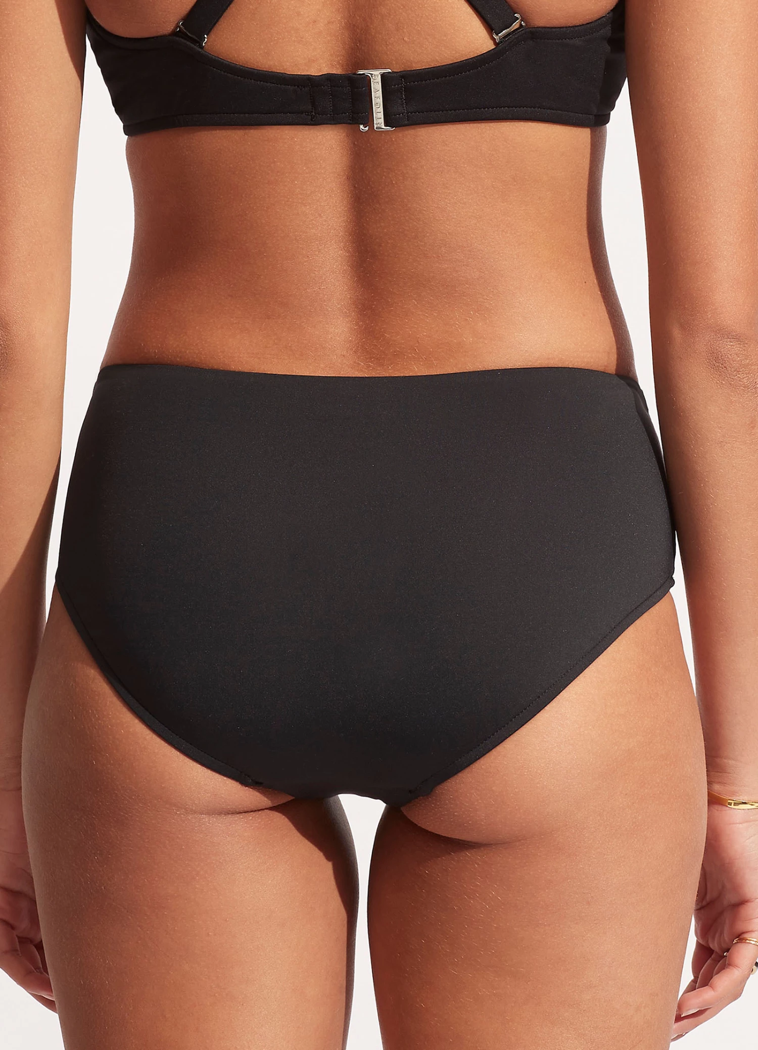 The Seafolly Collective Wide Side Bikini Bottom offers extra coverage with a mid-rise band and low legline cut. This retro bikini bottom is crafted from our recycled nylon fibre blend fabrication which will not only shape your figure but create a long lasting swim style.