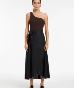 NAVY STRIPE COLOUR: Halcyon is wearing a size S garment. She usually wears an AU 8/S is 180cm tall, has a 78cm bust, 94cm hips and a 62cm waist.