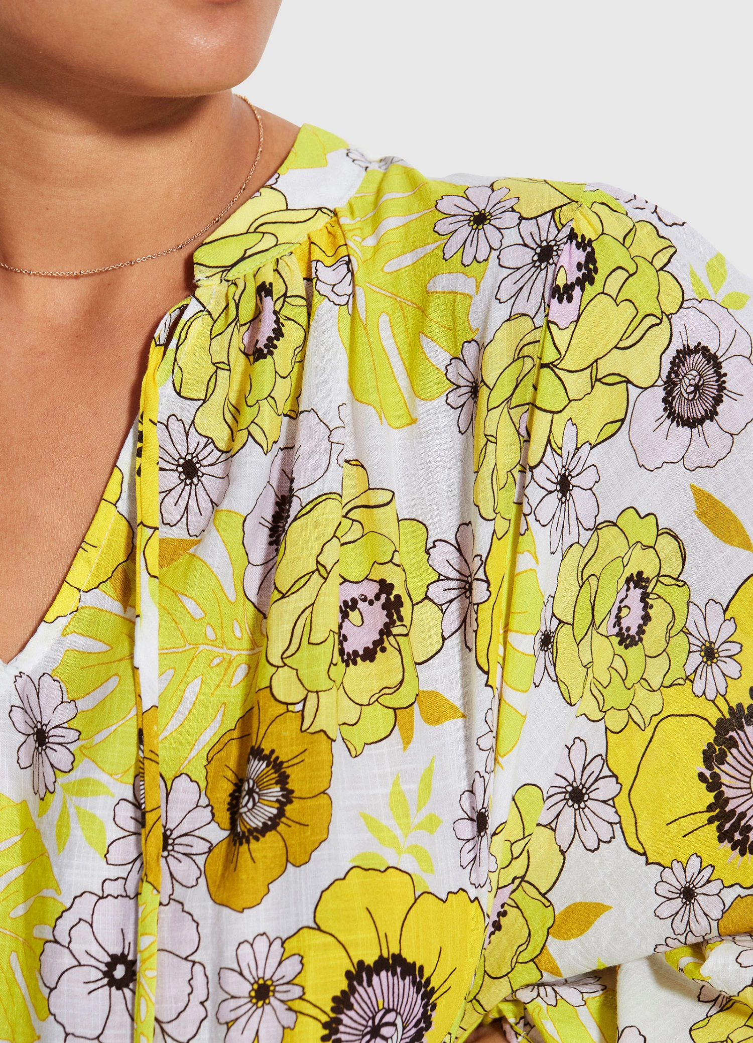 The Summer Of Love Tiered Dress features classic beach dress styling with bell sleeves and a relaxed tiered detail skirt. This 100% Cotton beach dress is complete with tassel ties for a effortless summer style.